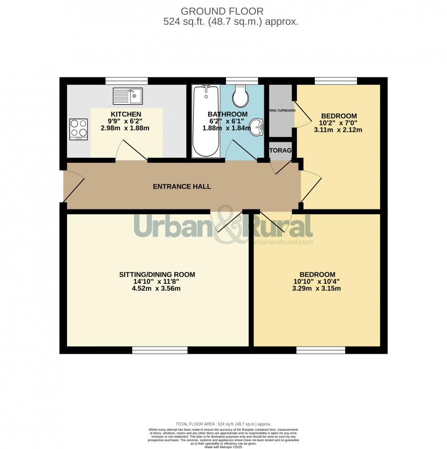 These particulars are set out as a general outline in accordance with the Property Misdescriptions Act (1991) only for the guidance of intending purchasers or lessees, and do not constitute any part of an offer or contract. Details are given without any responsibility, and any intending purchasers, lessees or third parties should not rely on them as statements or representations of fact but must satisfy themselves by inspection or otherwise as to the correctness of each of them. We have not carried out a structural survey and the services, appliances and specific fittings have not been tested. All photographs, measurements, floor plans and distances referred to are given as a guide only and should not be relied upon for the purchase of carpets or any other fixtures or fittings. Gardens, roof terraces and balconies as well as tenure and lease details cannot have their accuracy guaranteed for intending purchasers. Lease details, service ground rent (where applicable) are given as a guide only and should be checked and confirmed by your solicitor prior to exchange of contracts. No person in the employment of Urban & Rural has any authority to make any representation or warranty whatever in relation to this property. Purchase prices, rents or other prices quoted are correct at the date of publication and, unless otherwise stated, are exclusive of VAT. Intending purchasers and lessees must satisfy themselves independently as to the incidence of VAT in respect of any transaction relating to this property. We retain the copyright in all advertising material used to market this Property.Floorplan