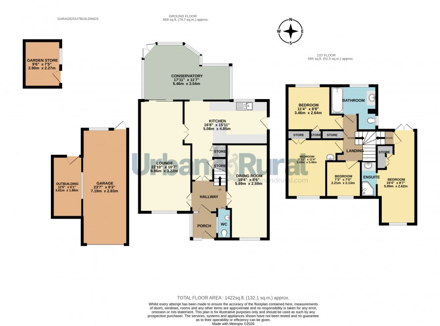 These particulars are set out as a general outline in accordance with the Property Misdescriptions Act (1991) only for the guidance of intending purchasers or lessees, and do not constitute any part of an offer or contract. Details are given without any responsibility, and any intending purchasers, lessees or third parties should not rely on them as statements or representations of fact but must satisfy themselves by inspection or otherwise as to the correctness of each of them. We have not carried out a structural survey and the services, appliances and specific fittings have not been tested. All photographs, measurements, floor plans and distances referred to are given as a guide only and should not be relied upon for the purchase of carpets or any other fixtures or fittings. Gardens, roof terraces and balconies as well as tenure and lease details cannot have their accuracy guaranteed for intending purchasers. Lease details, service ground rent (where applicable) are given as a guide only and should be checked and confirmed by your solicitor prior to exchange of contracts. No person in the employment of Urban & Rural has any authority to make any representation or warranty whatever in relation to this property. Purchase prices, rents or other prices quoted are correct at the date of publication and, unless otherwise stated, are exclusive of VAT. Intending purchasers and lessees must satisfy themselves independently as to the incidence of VAT in respect of any transaction relating to this property. We retain the copyright in all advertising material used to market this Property. For Urban & Rural to comply with 2019 government money laundering legislation we are required to confirm the identity of all prospective buyers. We use a third party called Verify 365, who will charge £25 (inc vat) per check.Floorplan